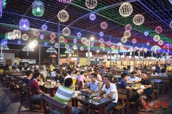 遍布??诔菂^(qū)的16家規(guī)模夜市,如一顆顆閃亮的明珠,刺激著市民游客的味蕾,也喚醒著這座國際化濱江濱?;▓@城市愜意的夜生活。
