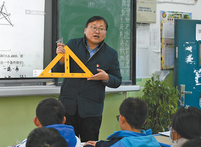 繁忙的管理工作以外,吳智勇主動承擔了初二年級一個班的數(shù)學教學工作。每個學期,他都會收兩到三名教師作“徒弟”,他說:“我會查看他們的教學計劃、教學備課材料,盡量多聽他們的課,并在課后進行輔導?!敝灰挥锌?,他還會隨機聽本地教師講的數(shù)學課,課后進行交流。