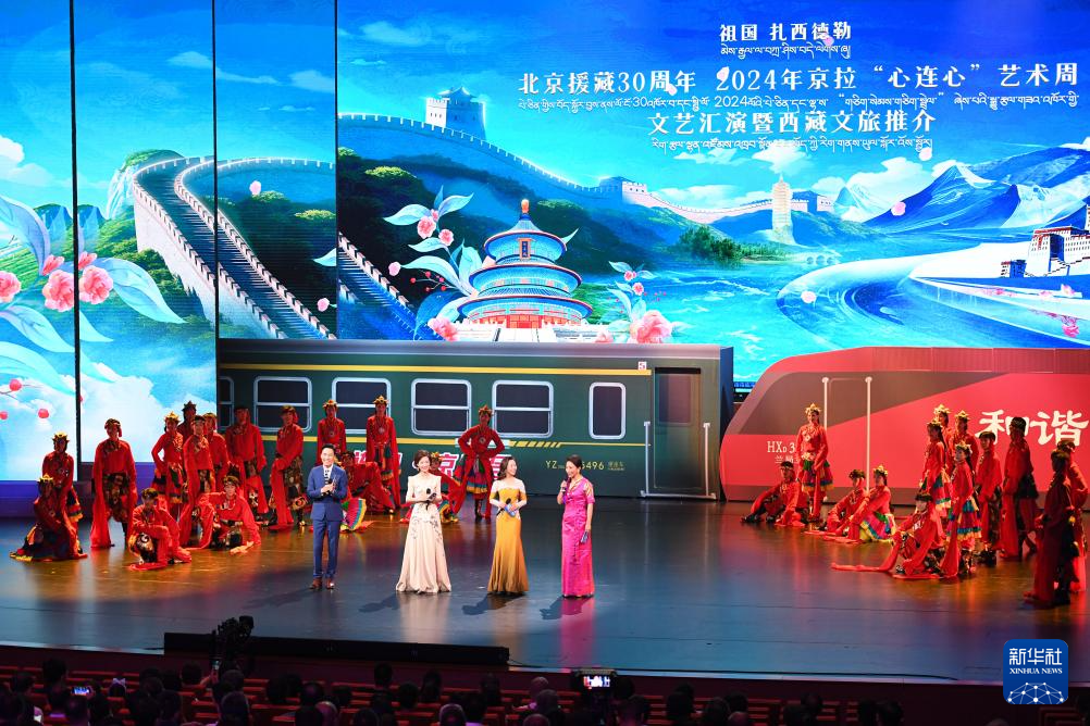 當(dāng)日,“北京援藏30周年·2024年京拉‘心連心’藝術(shù)周文藝匯演活動(dòng)”在北京藝術(shù)中心歌劇院上演。2024年是北京對(duì)口援藏30周年,演出展現(xiàn)北京援藏在民族交流交往交融、服務(wù)保障民生、推動(dòng)拉薩市經(jīng)濟(jì)社會(huì)發(fā)展等方面付出的努力和取得的成績。同時(shí),本場演出也對(duì)西藏文旅進(jìn)行推介。