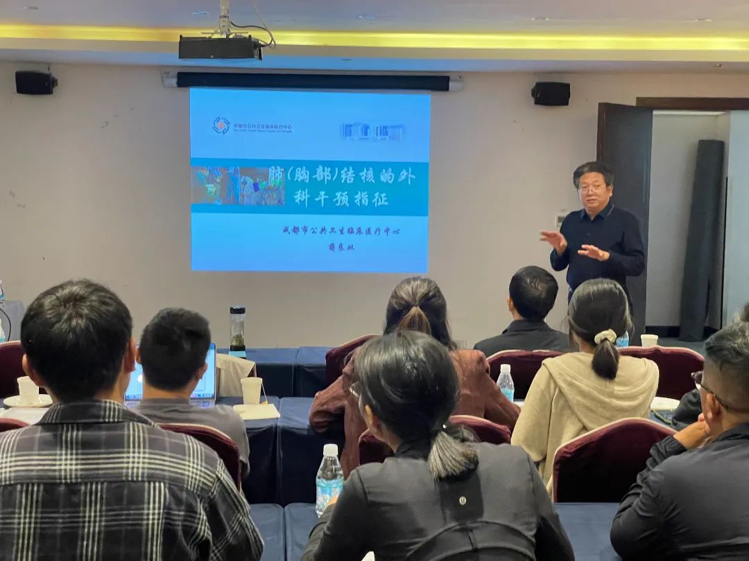 7月12日,日喀則市衛(wèi)生健康委員會舉辦結(jié)核病救治能力提升培訓班,醫(yī)療機構(gòu)、疾控中心、基層醫(yī)務工作者50余人參加培訓。成都市公共衛(wèi)生臨床醫(yī)療中心結(jié)核三科主任何畏、結(jié)核一科主任楊銘及結(jié)核六科醫(yī)療組長劉華結(jié)合當?shù)嘏R床實際病例,分別講授《特殊人群結(jié)核病的治療》《耐藥肺結(jié)核規(guī)范治療》《中國藥物性肝損傷基層診療與管理指南》。蔣良雙副書記特別講授了《肺(胸部)結(jié)核的外科干預指征》,對手術(shù)指征、手術(shù)方式以及術(shù)中解剖作詳盡講解。參訓醫(yī)護人員對結(jié)核病臨床診療技術(shù)、影像學診斷、功能室診斷、實驗室檢查、外科手術(shù)診療、結(jié)核病防控等有了系統(tǒng)認識,現(xiàn)場討論熱烈。