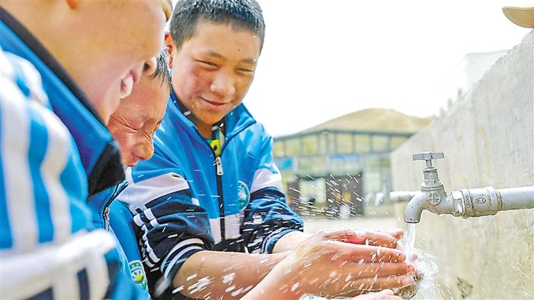 謝通門(mén)縣縣城自來(lái)水管網(wǎng)升級(jí)改造后,學(xué)生用自來(lái)水洗手。