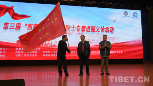 第三屆“西藏人人健康”院士專家進(jìn)藏義診活動啟動儀式授旗現(xiàn)場