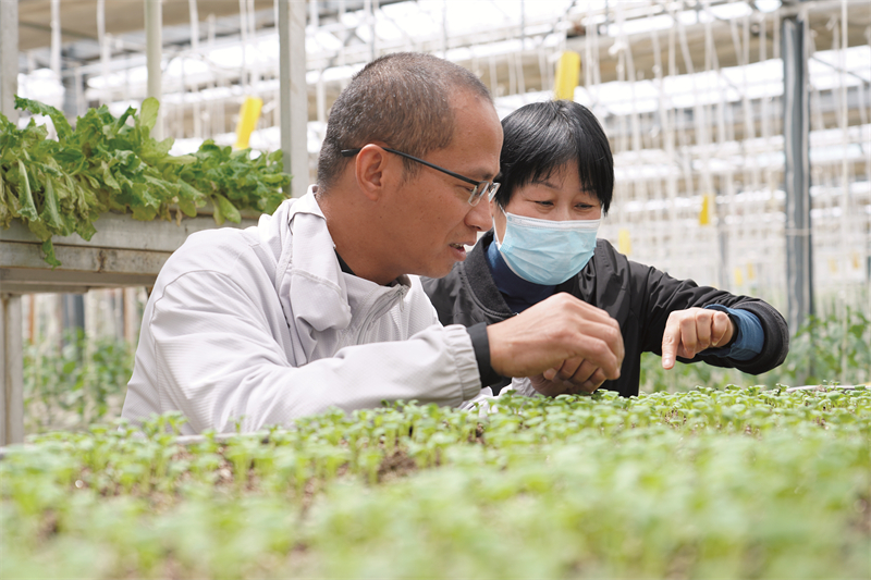 胡能兵向群眾傳授蔬菜種植技術。徐森 攝