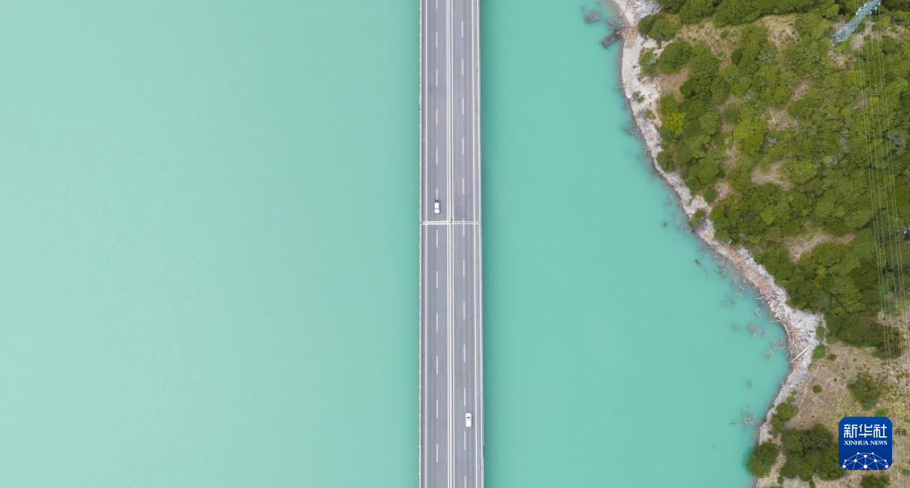 橫跨在西藏林芝市境內(nèi)尼洋河上的林芝至拉薩高等級(jí)(高速)公路(9月5日攝,無人機(jī)照片)。