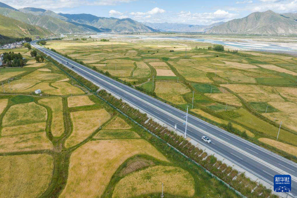 從空中俯瞰西藏拉薩至日喀則高等級(jí)(高速)公路南木林段(9月11日攝,無人機(jī)照片)。