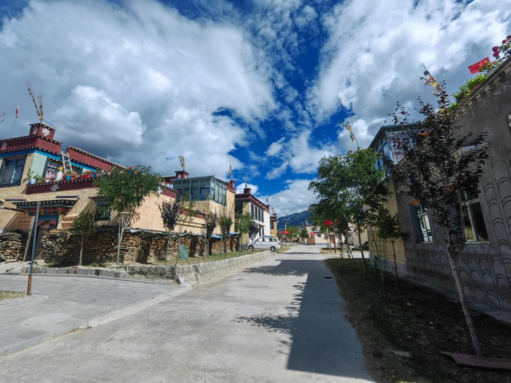 下山后的人們熱愛新家。許多人家在房頂插上國旗,在露臺上養(yǎng)花。達(dá)娃次仁被選為章達(dá)村黨支部書記。在他的帶動下,告別了沙土的村民們每周一自發(fā)輪流打掃村子衛(wèi)生。