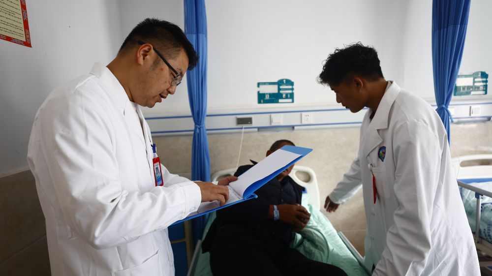 向桂林是一名援藏醫(yī)生,2023年3月,他從重慶市萬(wàn)州區(qū)來(lái)到西藏自治區(qū)昌都市察雅縣開(kāi)展醫(yī)療援藏工作。在察雅的一年半里,向桂林和隊(duì)員們參加了一百多次義診和下鄉(xiāng)指導(dǎo),累計(jì)接診門(mén)診患者1000余人次、救治住院患者400余人次,開(kāi)展手術(shù)35臺(tái),申報(bào)新技術(shù)10項(xiàng)。今年國(guó)慶,向桂林選擇繼續(xù)留守工作崗位?!爸荒茉谝曨l通話里和家人團(tuán)聚了。但這是我們的責(zé)任更是一種榮譽(yù)?!毕蚬鹆终f(shuō)。