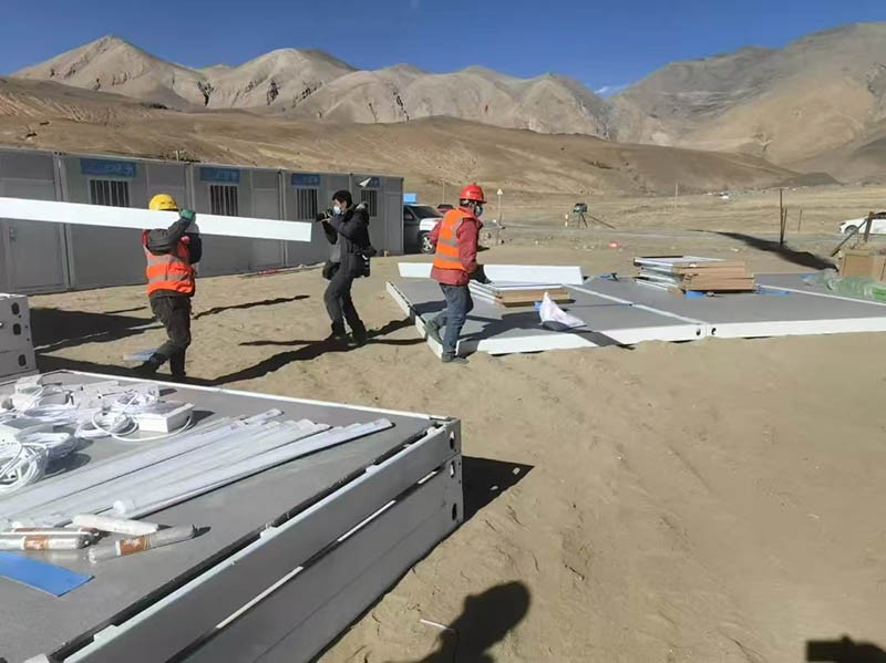 據(jù)介紹,災區(qū)海拔高達4000多米,氣溫只有-13℃,所以參與搭建的工人,必須是之前有過高原作業(yè)經(jīng)驗的?!凹b箱房是緊缺物資,我們早點到,就能讓更多人得到幫助。”當?shù)刎撠熑苏f。