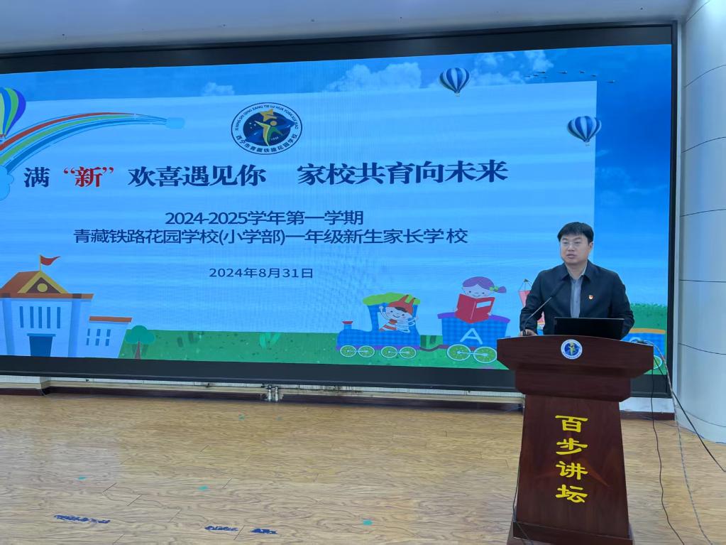 江蘇援青干部、青藏鐵路花園學(xué)校副校長許健在學(xué)校召開家長會。(受訪者供圖)