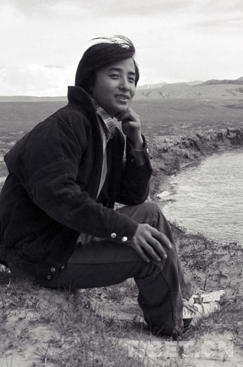 這是原文部辦事處(現(xiàn)尼瑪縣)機要科陳杰在小鎮(zhèn)旁河邊請記者為他拍照留念,以寄回家鄉(xiāng)免父母擔憂(唐召明1987年攝)