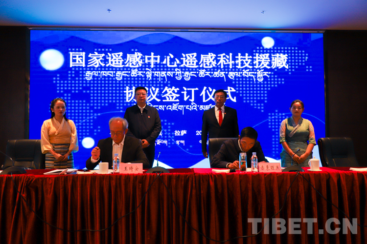 會(huì)上,科技部國(guó)家遙感中心與西藏自治區(qū)科學(xué)技術(shù)廳簽署了《關(guān)于遙感科技援藏的戰(zhàn)略合作協(xié)議》,并進(jìn)行了國(guó)家遙感中心西藏分部授牌儀式。