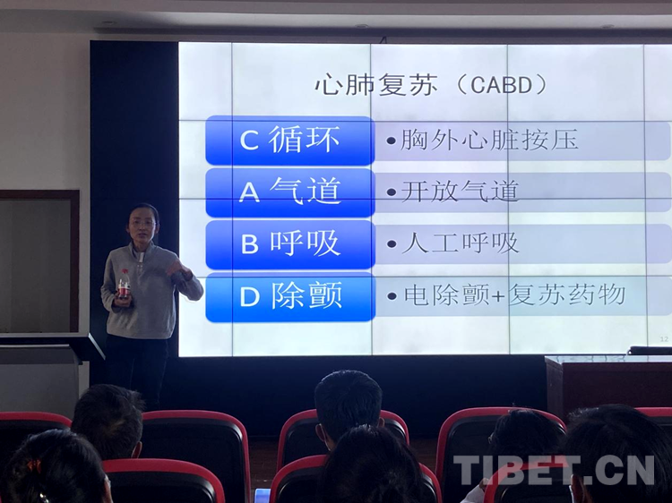 義診之后,北京第七批援藏醫(yī)療隊(duì)代表劉海霞醫(yī)生對(duì)社區(qū)衛(wèi)生院醫(yī)護(hù)人員進(jìn)行了心肺復(fù)蘇等急救培訓(xùn),參與義診的專(zhuān)家、醫(yī)生就社區(qū)衛(wèi)生院醫(yī)護(hù)人員在日常工作中所遇到的臨床問(wèn)題進(jìn)行解答。