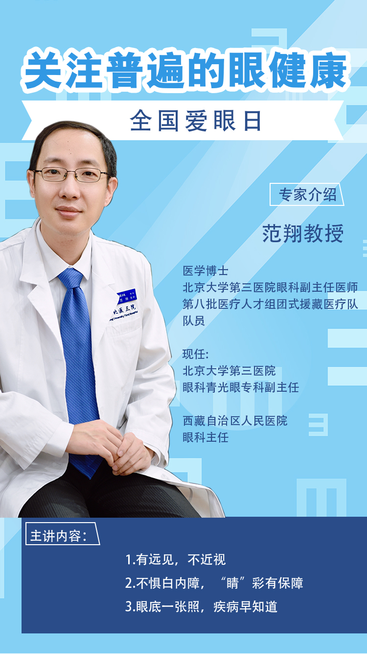 本期人物是來自北京大學(xué)第三醫(yī)院眼科專家、副主任醫(yī)師范翔,為大家總結(jié)眼病防治的常見知識。讓我們一起關(guān)注全年齡段全生命周期普遍的眼健康。