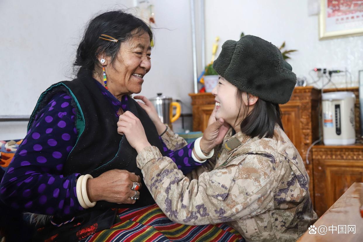 2024年3月1日,新疆軍區(qū)某工兵團官兵們走進阿里日土縣的敬老院,開展學(xué)雷鋒志愿服務(wù)活動。女兵王文靜與藏族阿媽溫馨互動的畫面,成為當天最暖心的一幕。 圖片來源:中國網(wǎng)