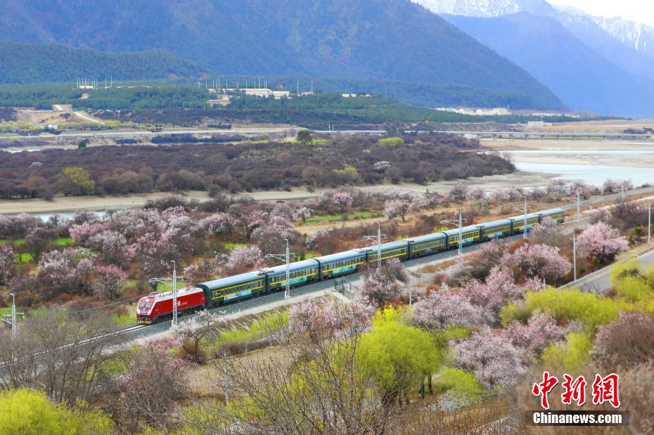 四月伊始,拉林鐵路沿線的桃花迎來(lái)了盛開時(shí)節(jié),藍(lán)天白云下,一朵朵桃花漲紅了臉頰,與遠(yuǎn)處的雪山交相輝映,吸引了不少游客來(lái)感受高原春天的獨(dú)特魅力。當(dāng)一列列火車穿過(guò)花海,映入眼簾的皆是滿山遍野的桃花,讓人仿佛置身于秀美的江南之中。圖為拉林鐵路沿線桃花盛開。