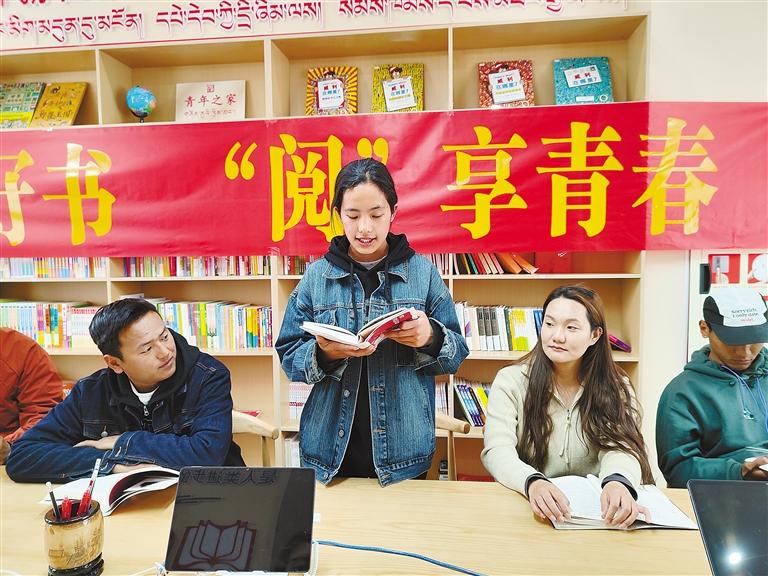 志愿者在新時代文明實踐站開展“讀書點亮心靈,書香潤澤人生”讀書分享會。