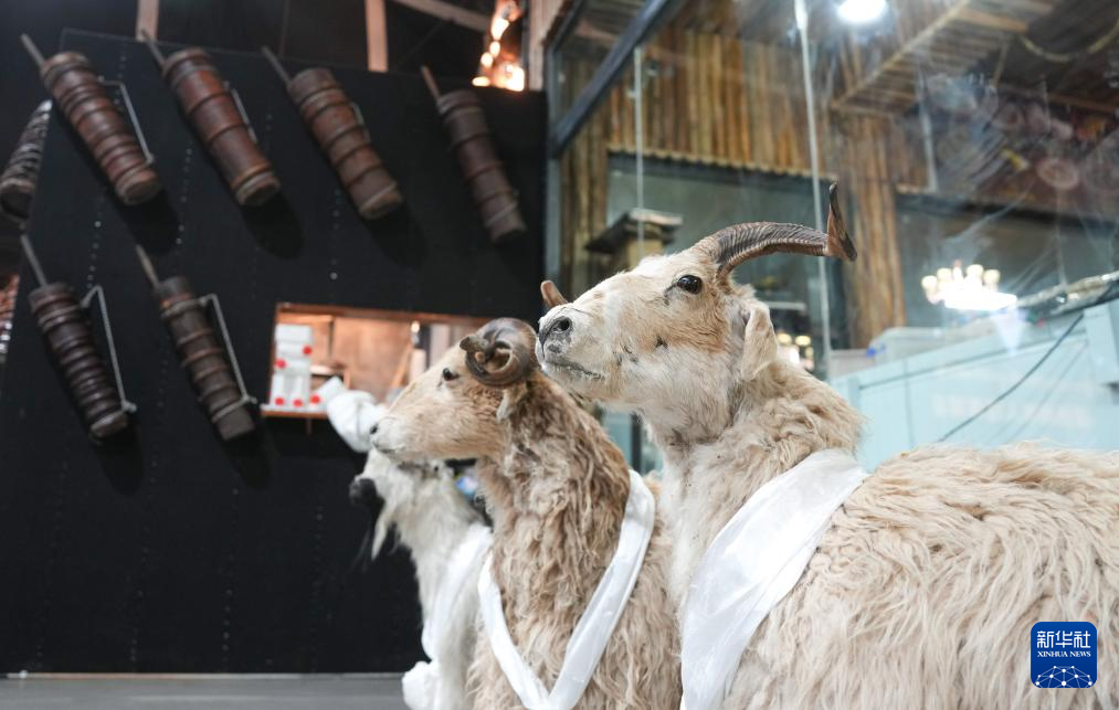 當(dāng)?shù)孛袼讓<邑暡悸逋凇澳寥藢殠臁辈厥讲桊^展示擠羊奶用的木桶(2月13日攝)。新華社記者 晉美多吉 攝