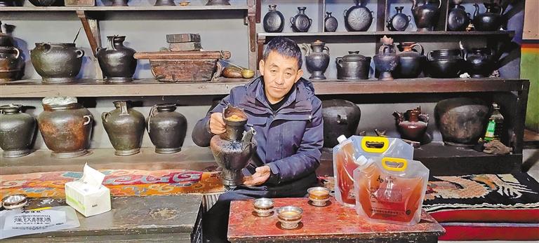 “我們的青稞酒賣得特別快?!鄙侥鲜协偨Y縣拉玉鄉(xiāng)強吉村“強欽青稞酒”非遺傳承人洛桑多吉笑呵呵地說,過年不提前訂就買不到,拉薩、澤當等地的80戶經銷商已經訂了1400袋5斤裝的青稞酒。
