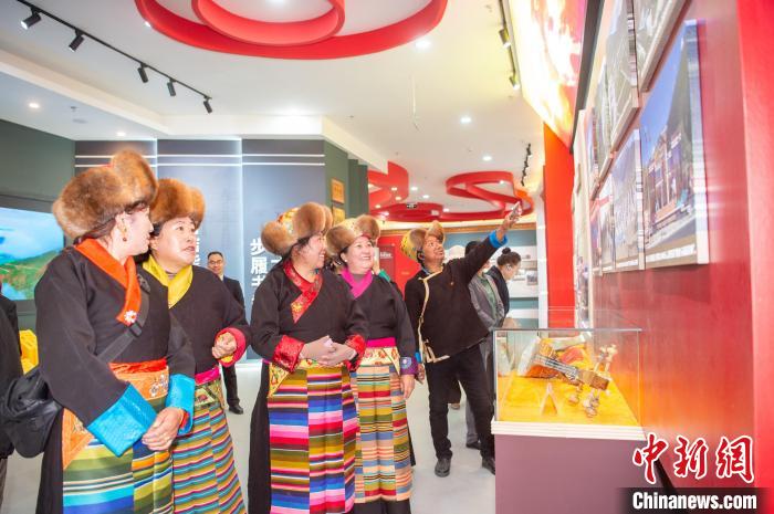 圖為當(dāng)?shù)厝罕娫谏H湛h鑄牢中華民族共同體意識教育實踐展廳參觀。旦增努布 攝