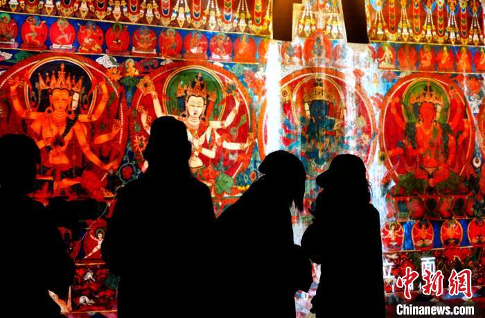5月18日是第49個(gè)國際博物館日,今年的主題是“快速變化社會(huì)中的博物館未來”,西藏博物館迎來參觀熱潮。圖為觀眾在西藏博物館內(nèi)欣賞阿里古格經(jīng)典壁畫數(shù)字化成果展。中新社記者 李林 攝
