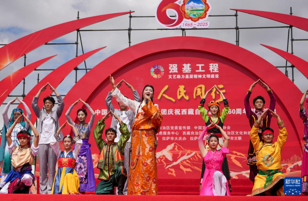 5月25日,由中國(guó)文聯(lián)、西藏自治區(qū)黨委宣傳部、中國(guó)文藝志愿者協(xié)會(huì)主辦的“與人民同行”中國(guó)文聯(lián)文藝志愿服務(wù)團(tuán)慶祝西藏自治區(qū)成立60周年慰問演出在位于拉薩的西藏會(huì)展中心廣場(chǎng)舉行。
