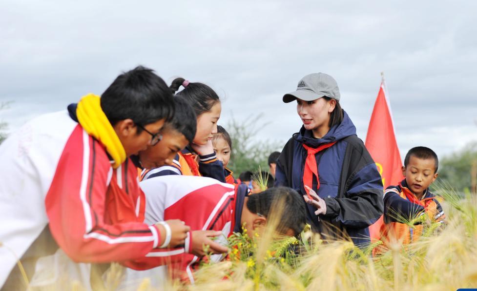 日喀則市上海實(shí)驗(yàn)學(xué)校德育副校長潘杰和學(xué)生在青稞地里交流。[詳細(xì)]