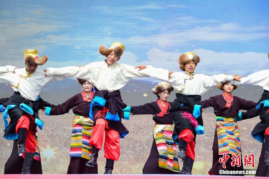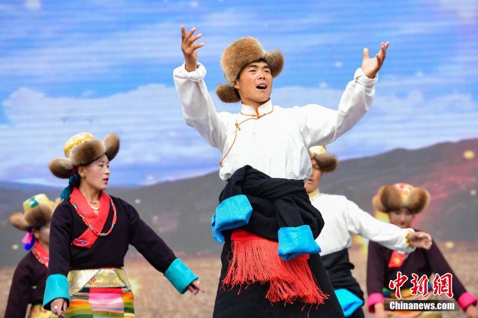 9月23日,“中國農(nóng)民豐收節(jié)”西藏慶?;顒?dòng)在拉薩市墨竹工卡縣舉行,當(dāng)?shù)孛癖娸d歌載舞,慶?!柏S收節(jié)”。 中新社記者 貢嘎來松 攝