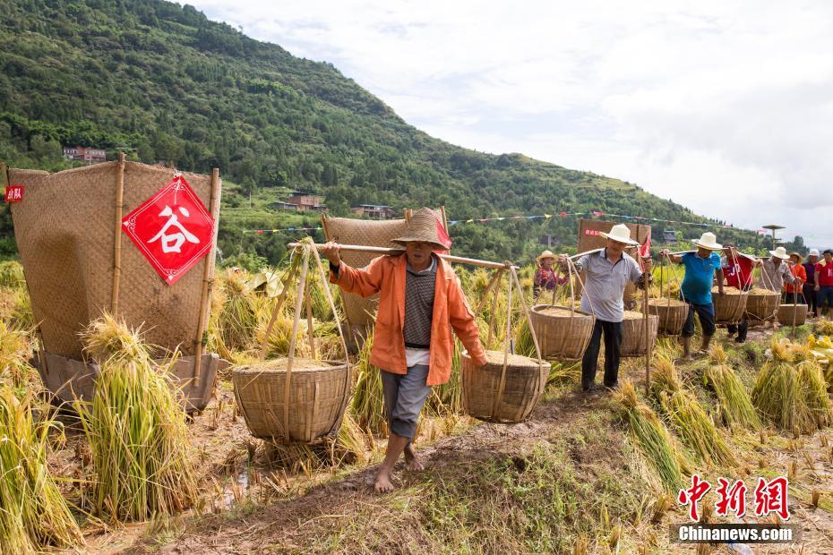 9月23日,2021年中國農(nóng)民豐收節(jié)·第一屆“天生云陽”金秋節(jié)在重慶云陽縣鳳鳴鎮(zhèn)拉開序幕。時(shí)下正是豐收的季節(jié),三峽庫區(qū)腹地重慶云陽縣的農(nóng)民門正忙著搶收搶曬,確保水稻玉米等農(nóng)作物顆粒歸倉。圖為農(nóng)民喜獲豐收。劉興敏 攝