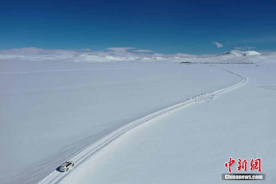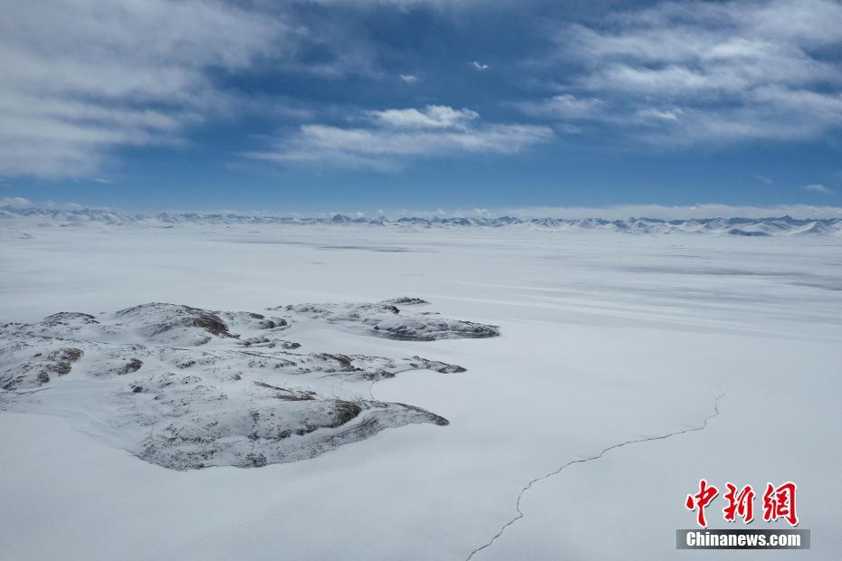 1月25日拍攝的納木錯(cuò)雪景。雪后的西藏納木錯(cuò)銀裝素裹,美景如畫。(無(wú)人機(jī)照片) 中新記者 貢嘎來(lái)松 攝