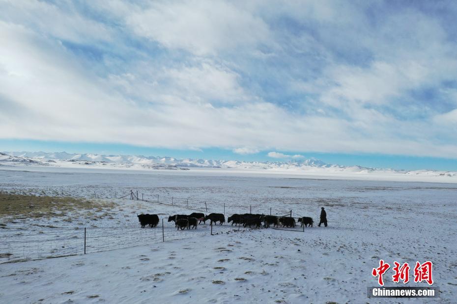 1月26日,牧民在納木錯(cuò)湖邊放牧。雪后的西藏納木錯(cuò)銀裝素裹,美景如畫。 中新社記者 貢嘎來(lái)松 攝