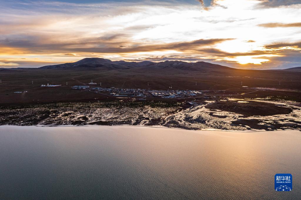 日落時分的雙湖縣多瑪鄉(xiāng)(7月14日攝,無人機照片)。新華社記者 孫非 攝