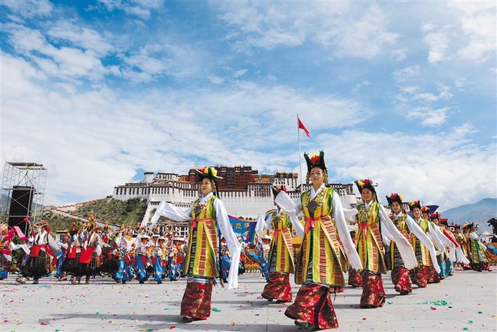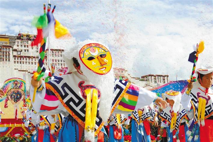 藏戲展演隊(duì)亮相布達(dá)拉宮廣場。