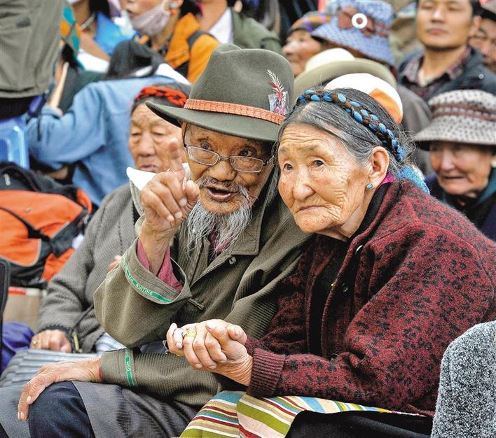 觀看藏戲的老人。