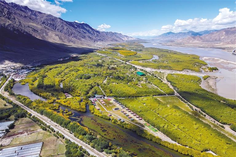 近年來,山南市持續(xù)加大生態(tài)環(huán)境保護(hù)力度,著力打造沿雅江、雅礱河、隆子河等生態(tài)廊道,持續(xù)鞏固國家生態(tài)文明建設(shè)示范市創(chuàng)建成果,讓綠色成為最靚麗的生態(tài)底色。 圖為雅江南岸防護(hù)林帶(乃東區(qū)段)如綠色“長城”般守護(hù)著雅江。(資料圖片)記者 劉楓 攝