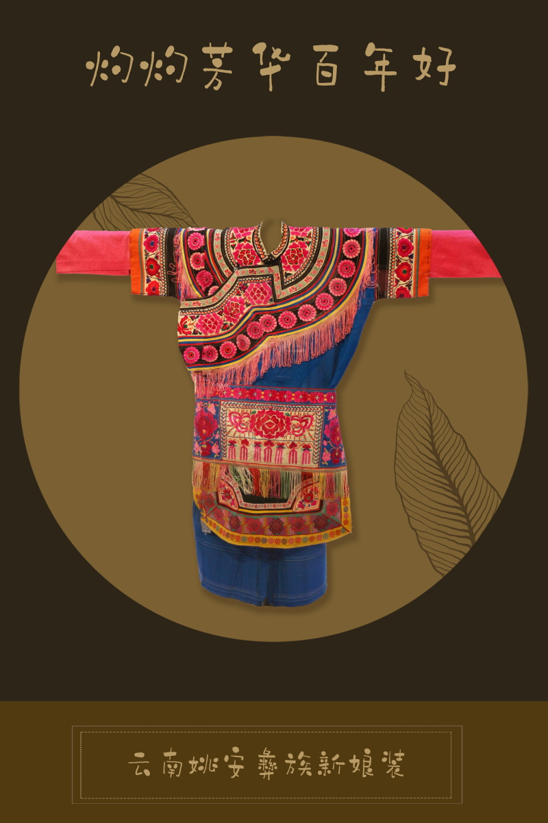 云南省美麗的山川、多樣的民族文化,給予這里的人們無限的想象力和豐富的創(chuàng)作靈感,各民族把自己對歷史過往的記憶、對大自然的熱愛、對美好事物的感受、對社會道德的崇尚等等,用服飾文化這一特殊語言表現(xiàn)出來。其中,民族婚禮服飾種類繁多,文化底蘊深厚,每一套服裝都反映出云南少數(shù)民族質樸的審美情趣與深厚的生活哲學。