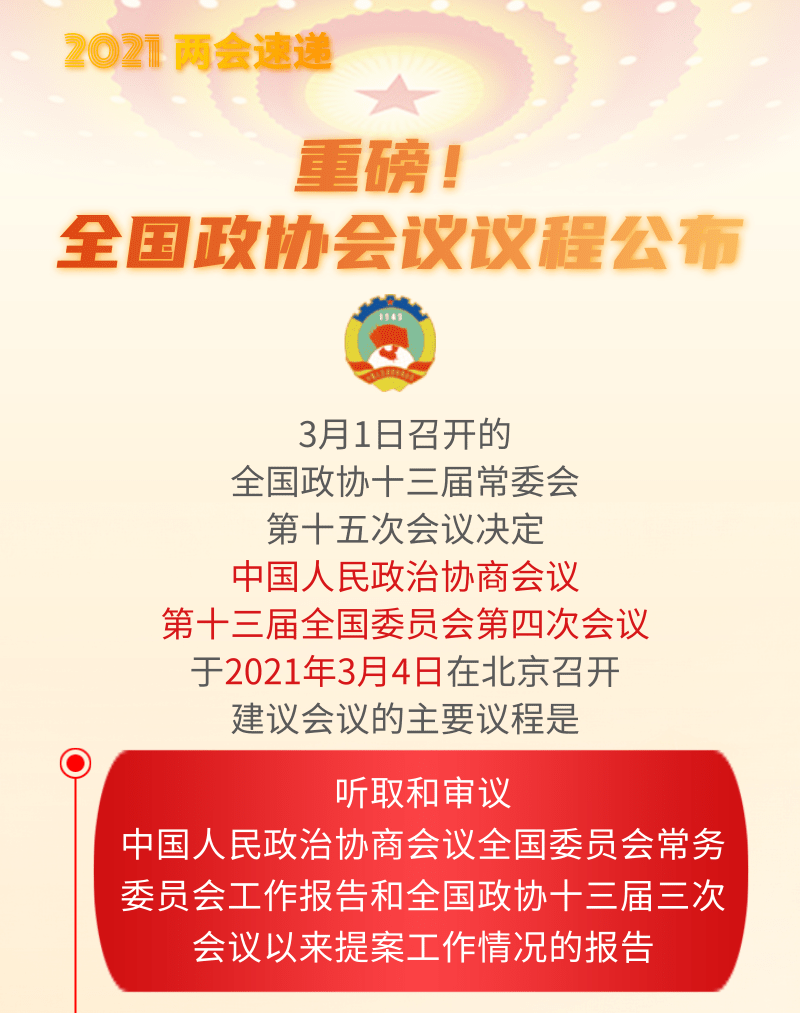 重磅!全國政協(xié)會(huì)議議程公布
