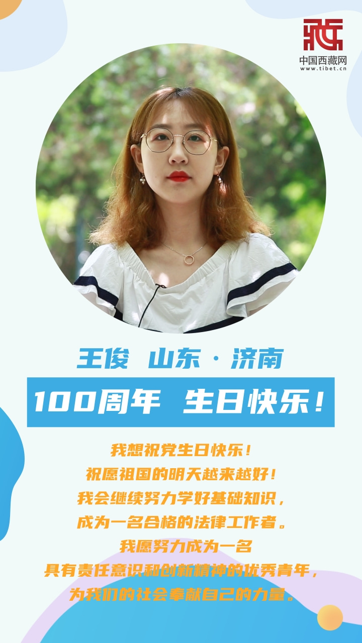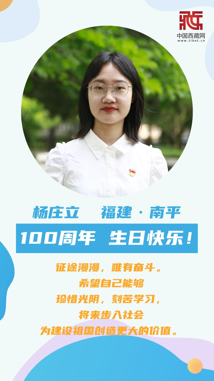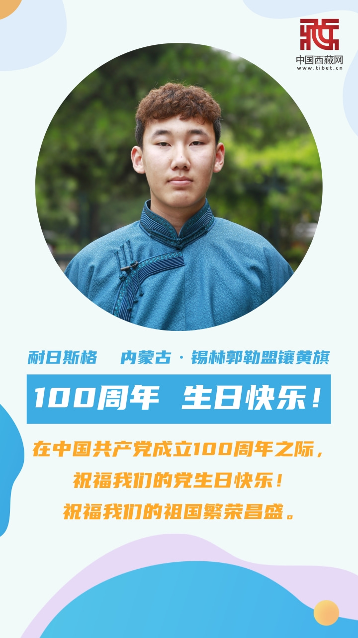 100年前,中國共產(chǎn)黨為苦難深重的中華民族帶來了光明與希望,100年后,中國人民在中國共產(chǎn)黨的帶領(lǐng)下,看到了中華民族偉大復(fù)興的曙光。在中國共產(chǎn)黨成立100周年之際,一起聆聽新時(shí)代青年學(xué)子送上的祝福!(制作/許娜 編輯/澤仁措姆)