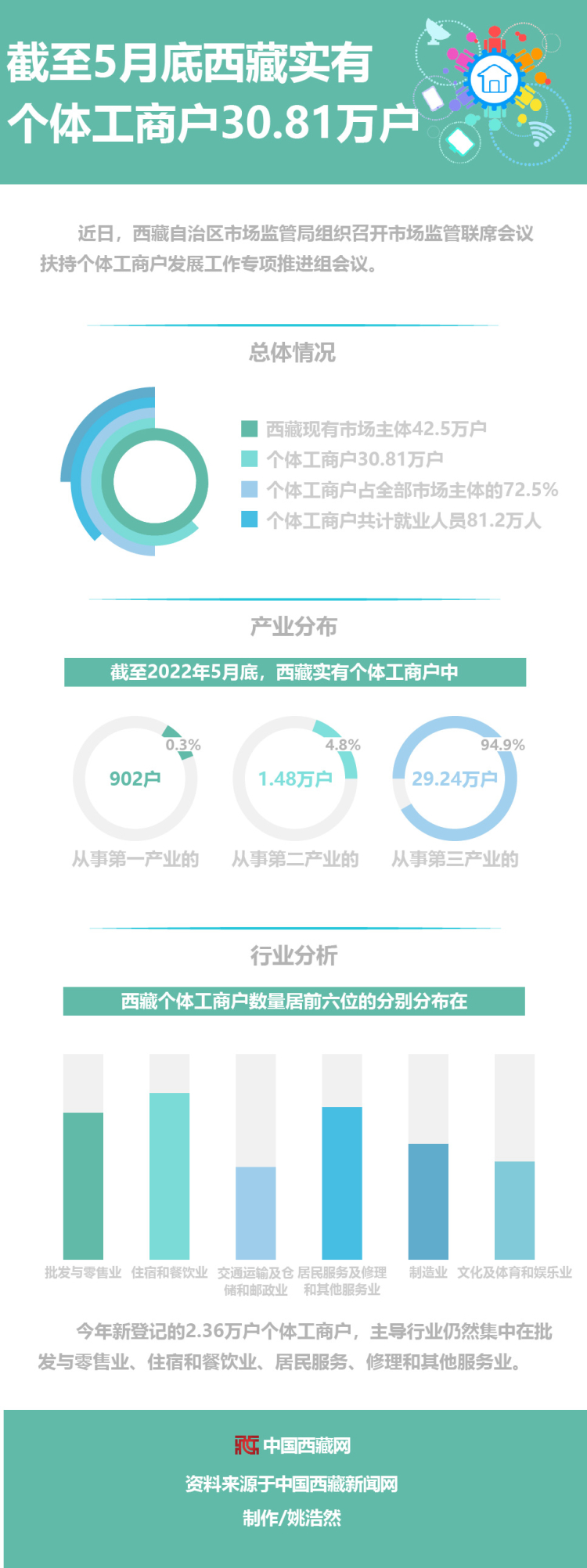 圖解|截至5月底西藏實(shí)有個(gè)體工商戶30.81萬(wàn)戶