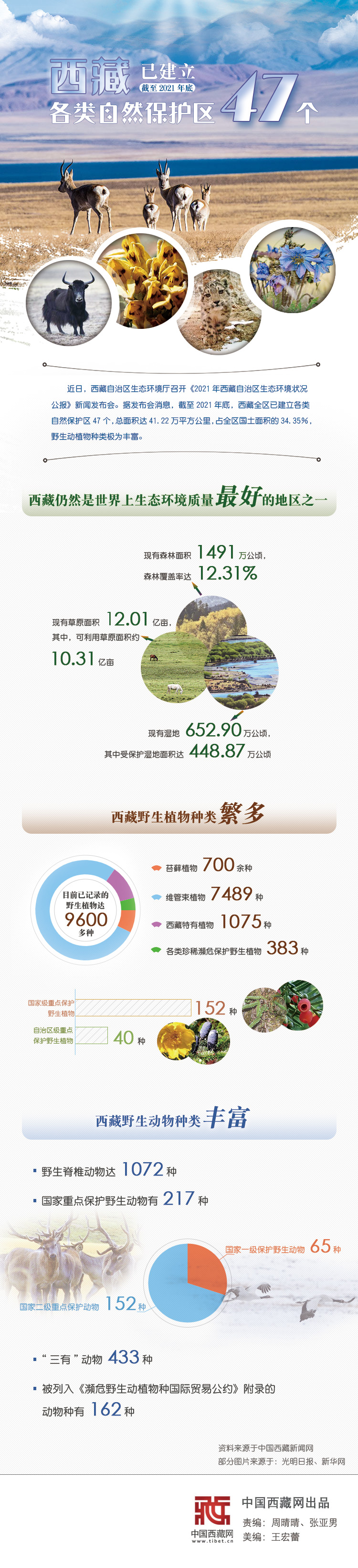 圖解|截至2021年底 西藏已建立各類自然保護(hù)區(qū)47個(gè)