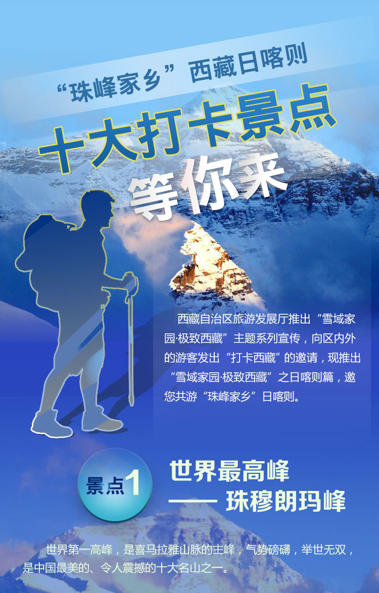 西藏自治區(qū)旅游發(fā)展廳推出“雪域家園·極致西藏”主題系列宣傳,向區(qū)內(nèi)外的游客發(fā)出“打卡西藏”的邀請,現(xiàn)推出“雪域家園·極致西藏”之日喀則篇,邀您共游“珠峰家鄉(xiāng)”日喀則。 [詳細] -