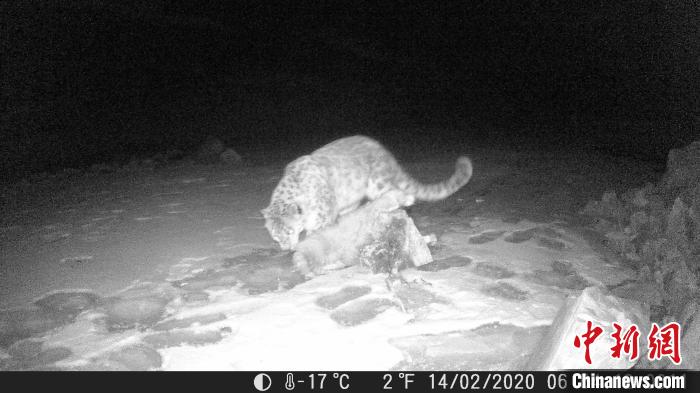 視頻截圖為紅外相機在青海省海北藏族自治州海晏縣夏格爾山拍攝到的雪豹清晰影像 圖片來源:中新網(wǎng)