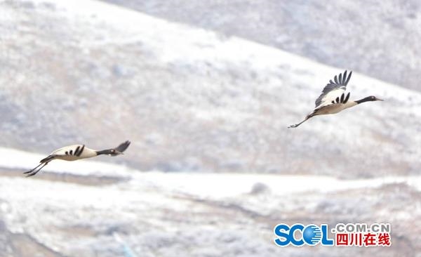 黑頸鶴是世界上唯一生長(zhǎng)和繁殖在高原的鶴。每年3月至11月,在阿壩州若爾蓋、紅原兩縣,總能見到成群的黑頸鶴在此繁衍棲息。其中,有“中國(guó)黑頸鶴之鄉(xiāng)”稱號(hào)的若爾蓋縣現(xiàn)有1000多只黑頸鶴,是世界上黑頸鶴分布數(shù)量最多、繁殖地面積最大的區(qū)域。