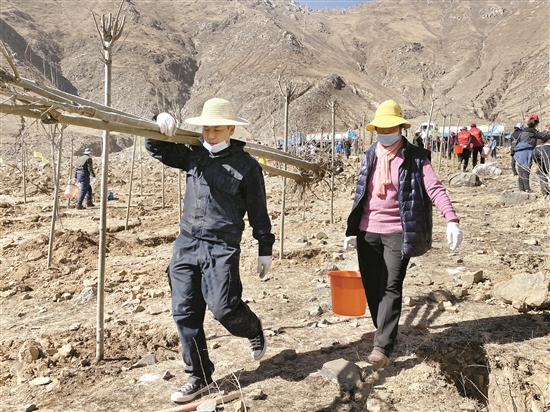 3月27日,區(qū)市142家單位的干部職工來到堆龍德慶區(qū)乃瓊街道波瑪村,共同參加主題為“積極參與義務(wù)植樹,共建綠色幸福拉薩”的義務(wù)植樹活動,為拉薩大地再添新綠。