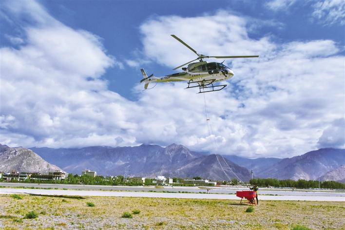 6月9日上午10時許,西藏自治區(qū)拉薩雪鷹通用航空公司的停機坪上,兩架直升機正在進行飛行前的準備工作。這次飛行和以往的每一次飛行都不一樣,因為飛機要攜帶造林用的種子,在空中進行撒播——也就是飛播造林。