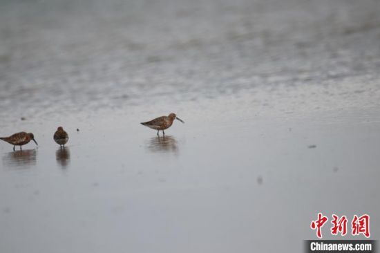 圖為彎嘴濱鷸??婶斂撕?托素湖自然保護區(qū)服務中心供圖