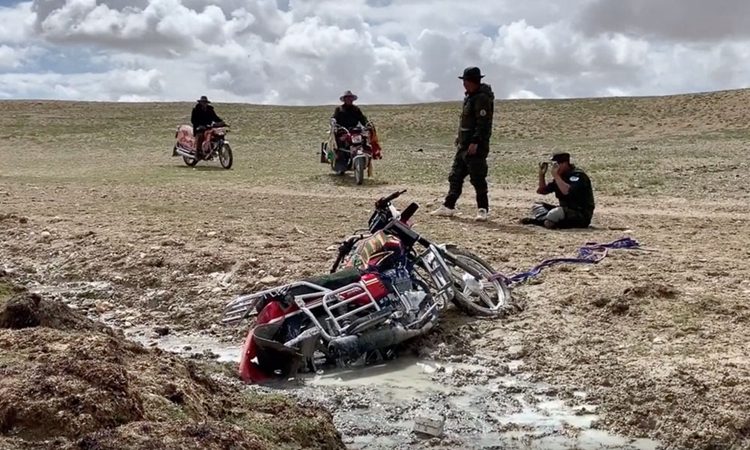 圖為陷在泥坑中的摩托車 圖片來源那曲廣播電視臺(tái)