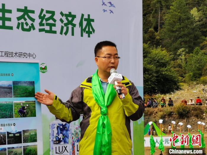 圖為西藏高原草業(yè)工程技術研究中心武俊喜博士回顧“力士·綠哈達行動”植草歷程。 張偉 攝