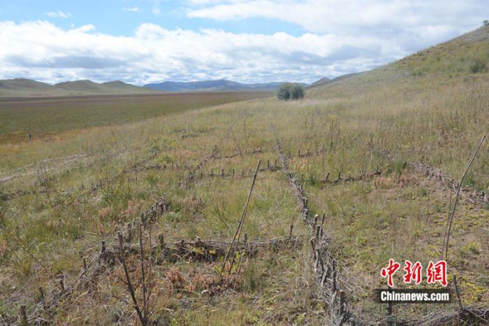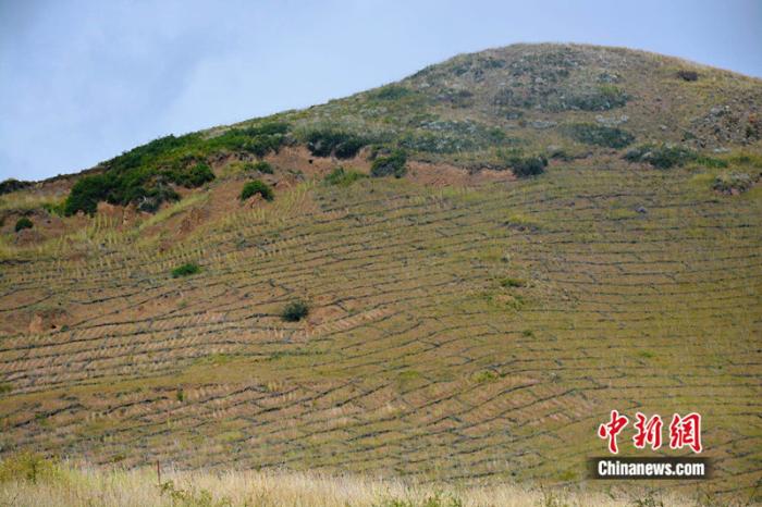 走進(jìn)四川省阿壩州若爾蓋縣轄曼鎮(zhèn)西倉村治沙點(diǎn),山坡上巨大的“棋盤”格外醒目。縣林草局生態(tài)修復(fù)股助理工程師涂勝介紹,這是用于治理草原沙化的高山柳沙障。