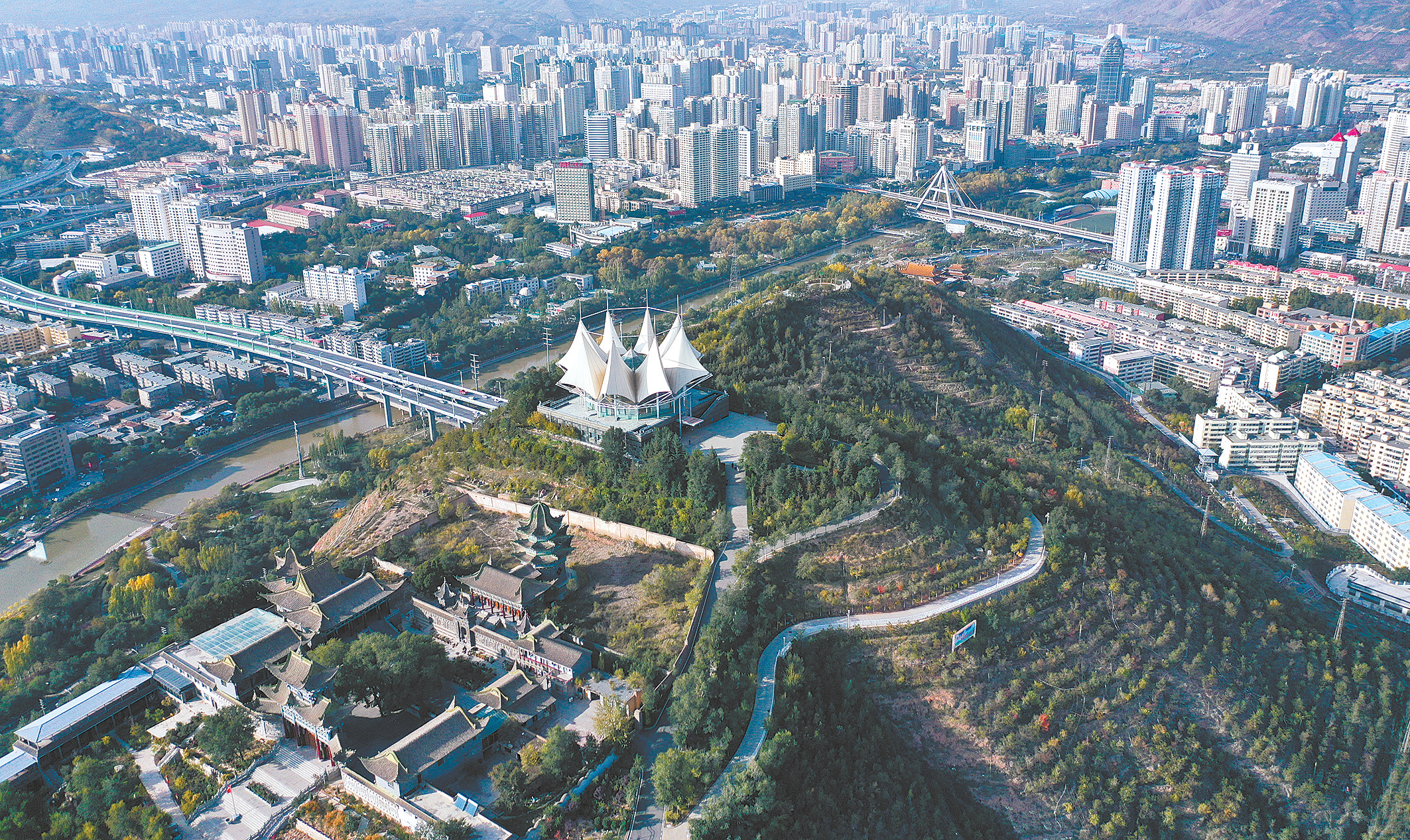 10月12日拍攝的西寧市南山公園(無人機(jī)照片)。