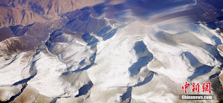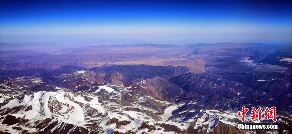 11月9日,記者從萬米高空俯瞰祁連山,雪域之巔造型各異,氣勢恢宏的雪山棱角分明,在皚皚白雪的覆蓋下,山巔似撒了一把把“椒鹽”,陽剛與陰柔之美相得益彰,高原湖泊如藍(lán)寶石般鑲嵌在祁連山脈,更有藍(lán)天、白雪、黃沙和諧同框的奇觀,宛如張張“水墨丹青”的油彩畫,看“醉”空中旅人。 魏建軍 攝